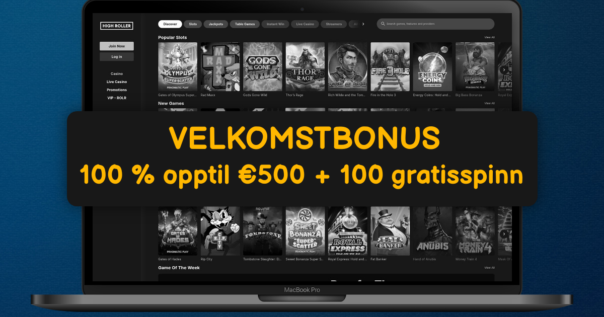 Highroller Casino tilbyr målrettede bonusløsninger for et norsk online kasino. Fokus ligger på gratisspinn uten omsetning og en velkomstbonus til spill med ekte penger.